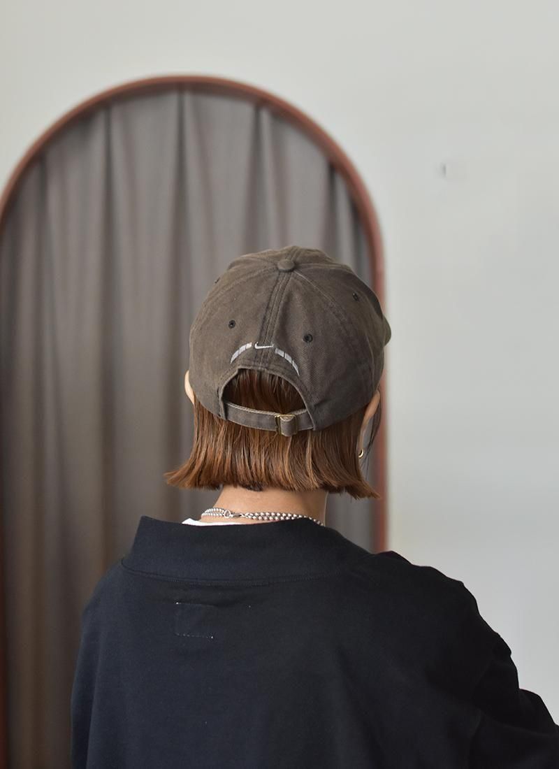 フェード感のあるブラウンボディにナイキロゴの刺繍が施されています。
