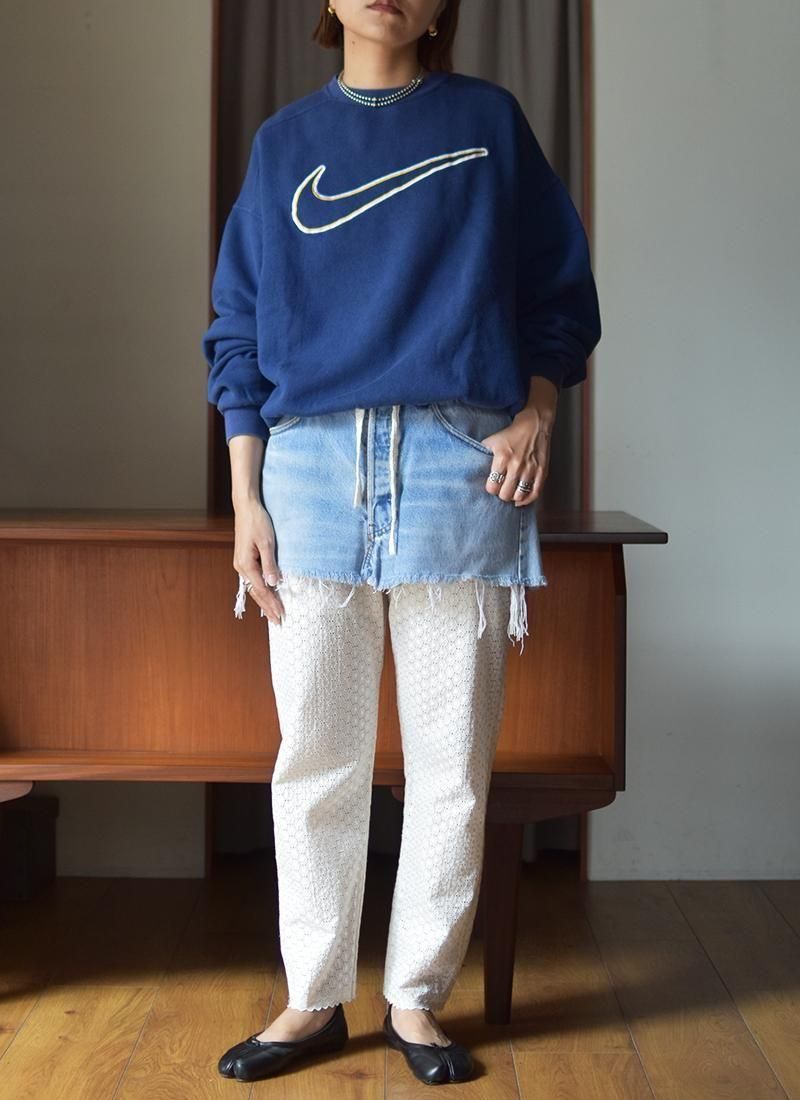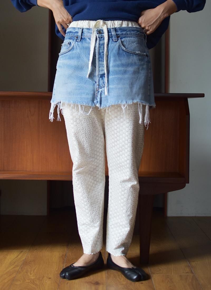 デニムオンデニムはもちろん、スラックスやベロアパンツ等々。。。お手持ちのボトムスに合わせるだけで旬な印象に。