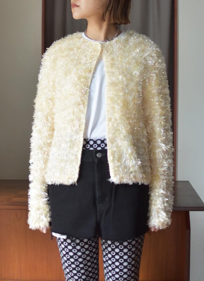 ホワイトとイエローのミックスの糸で編み立てられており、とても表情のある1枚。