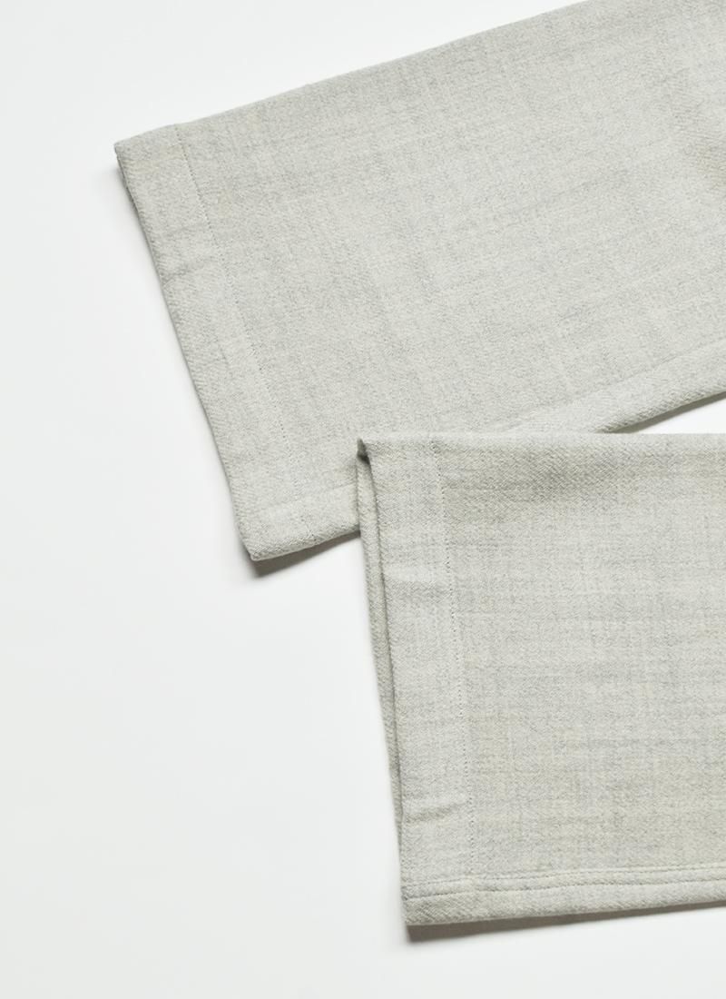 ウールのパンツの良いところはロンTやスエットを合わせてもカジュアルになりすぎず、上品な雰囲気にしてくれるところ。敢えてラフなアイテムとのスタイリングもオススメです。