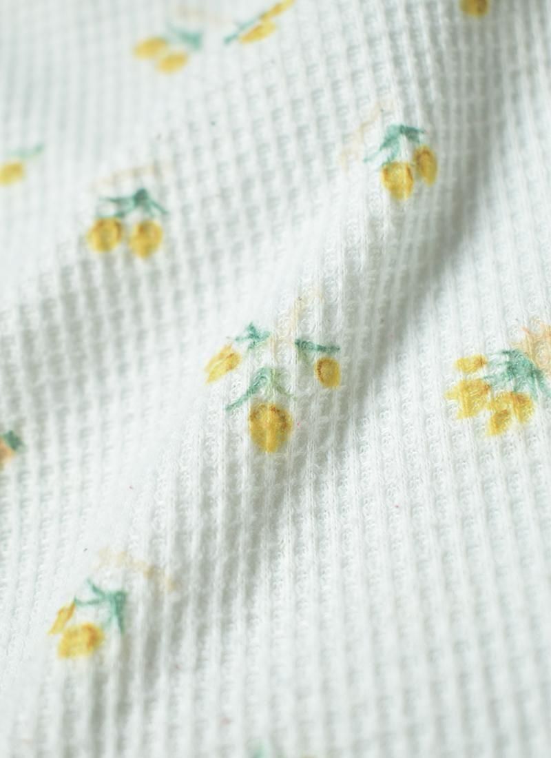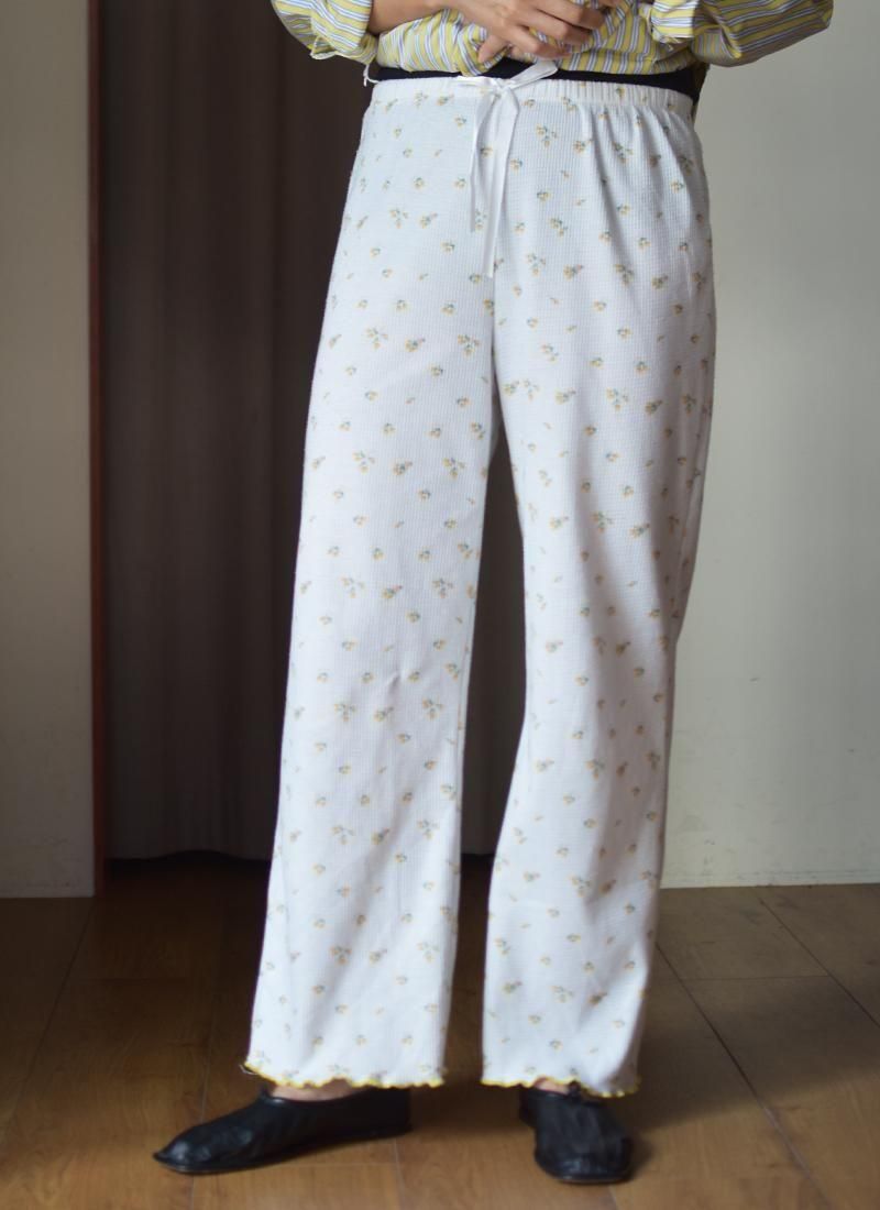 程よいワイド感が気分な、可愛い花柄のサーマルパンツ。