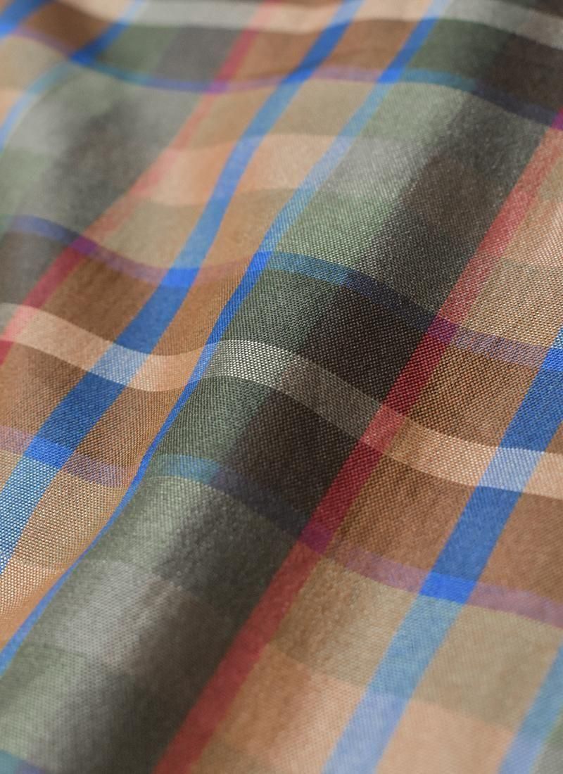 艶感のある生地がモダンな印象のチェック柄ジャケット。