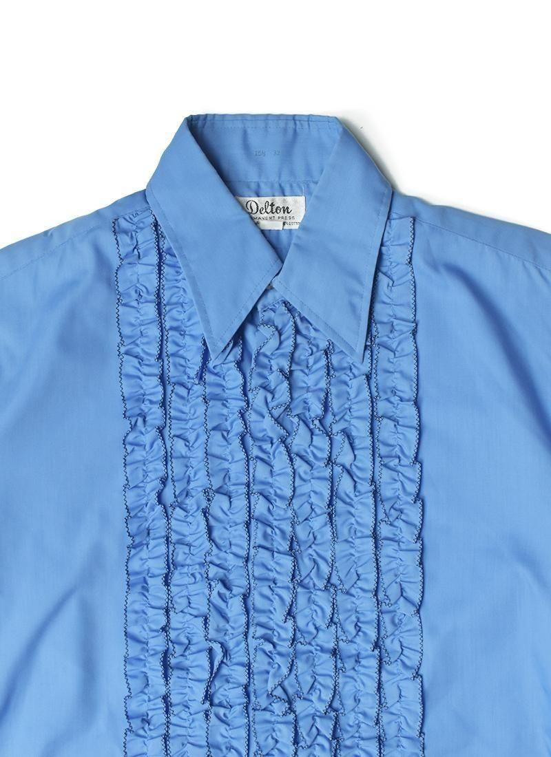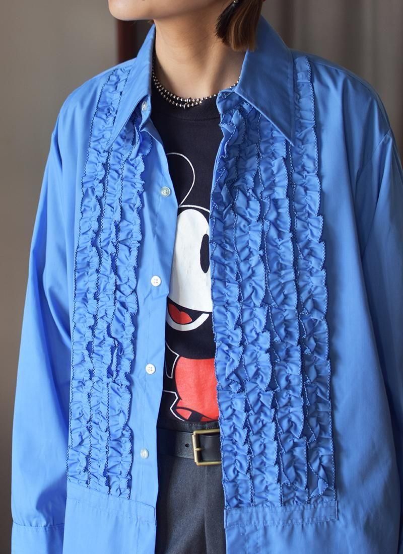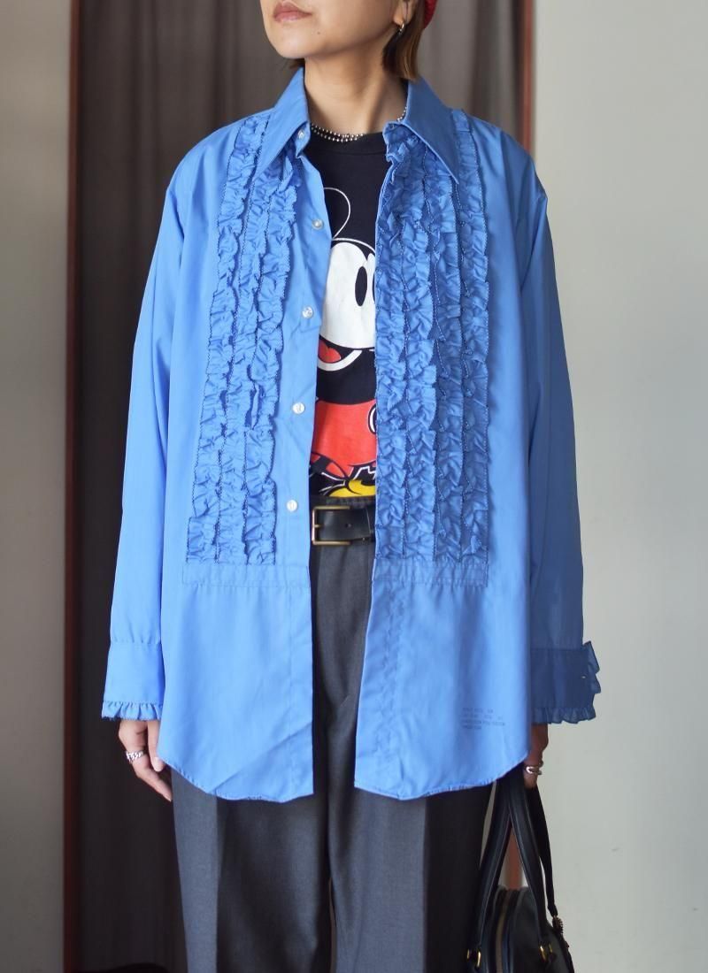 フロントと袖口にあしらわれたフリルデザインが可愛らしい70年代のブラウス。