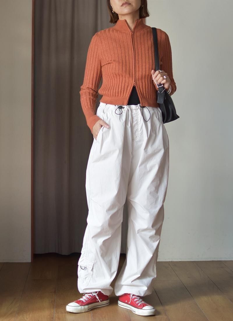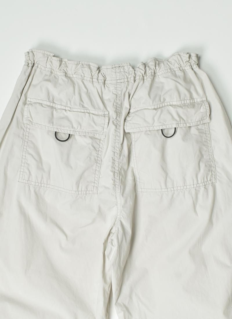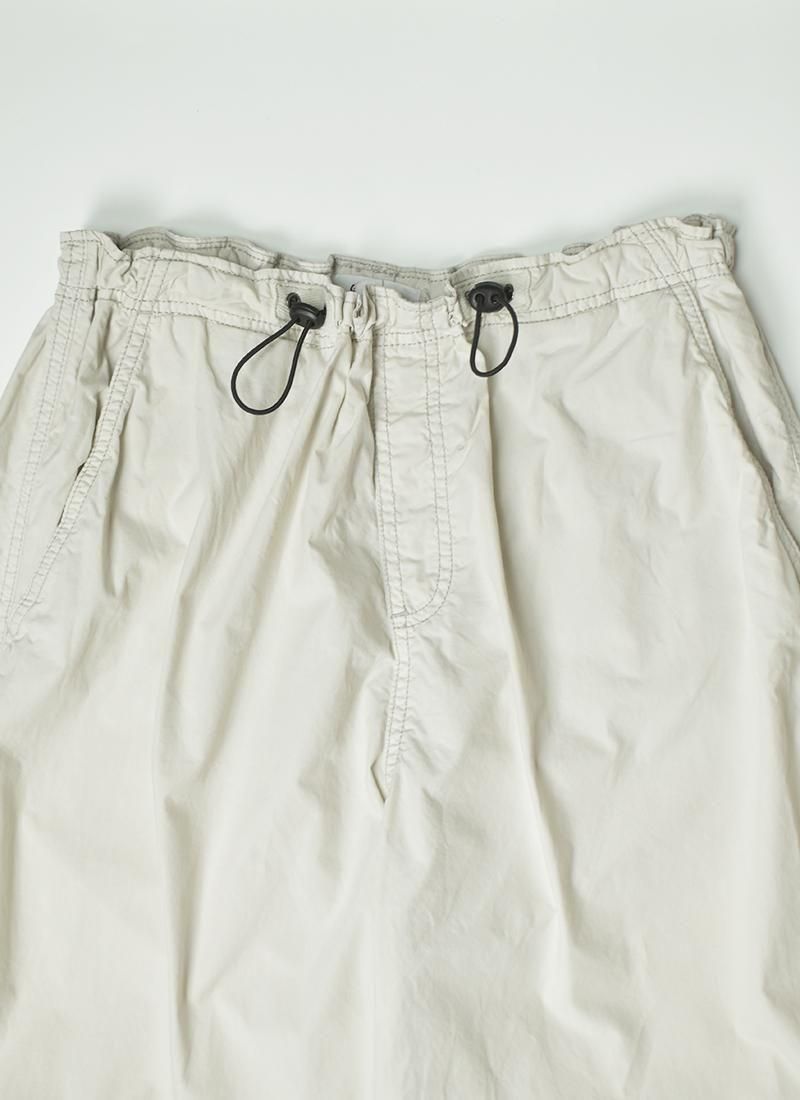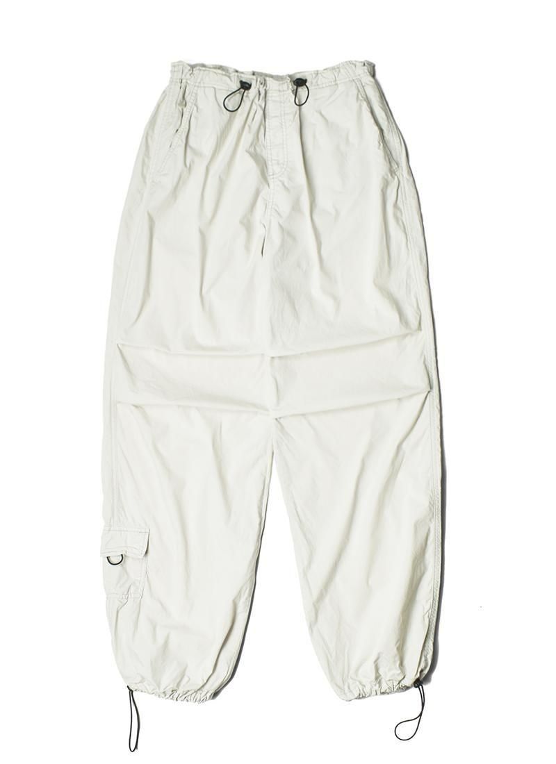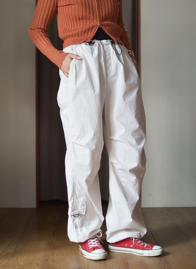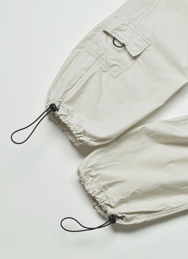 ウエストと裾はドローコード付きのイージーな履き心地。