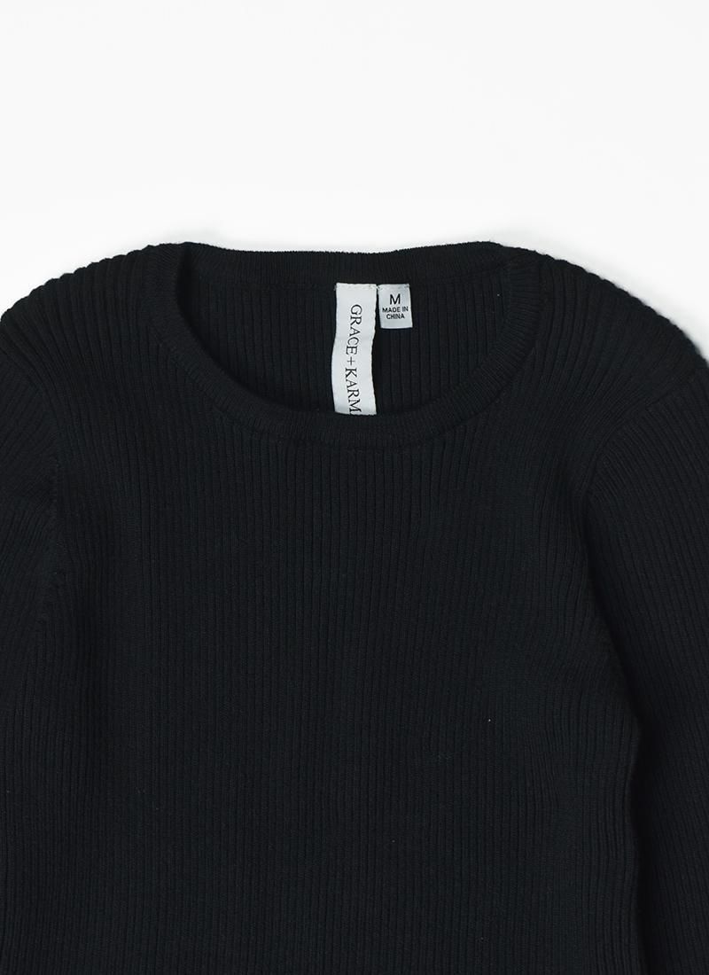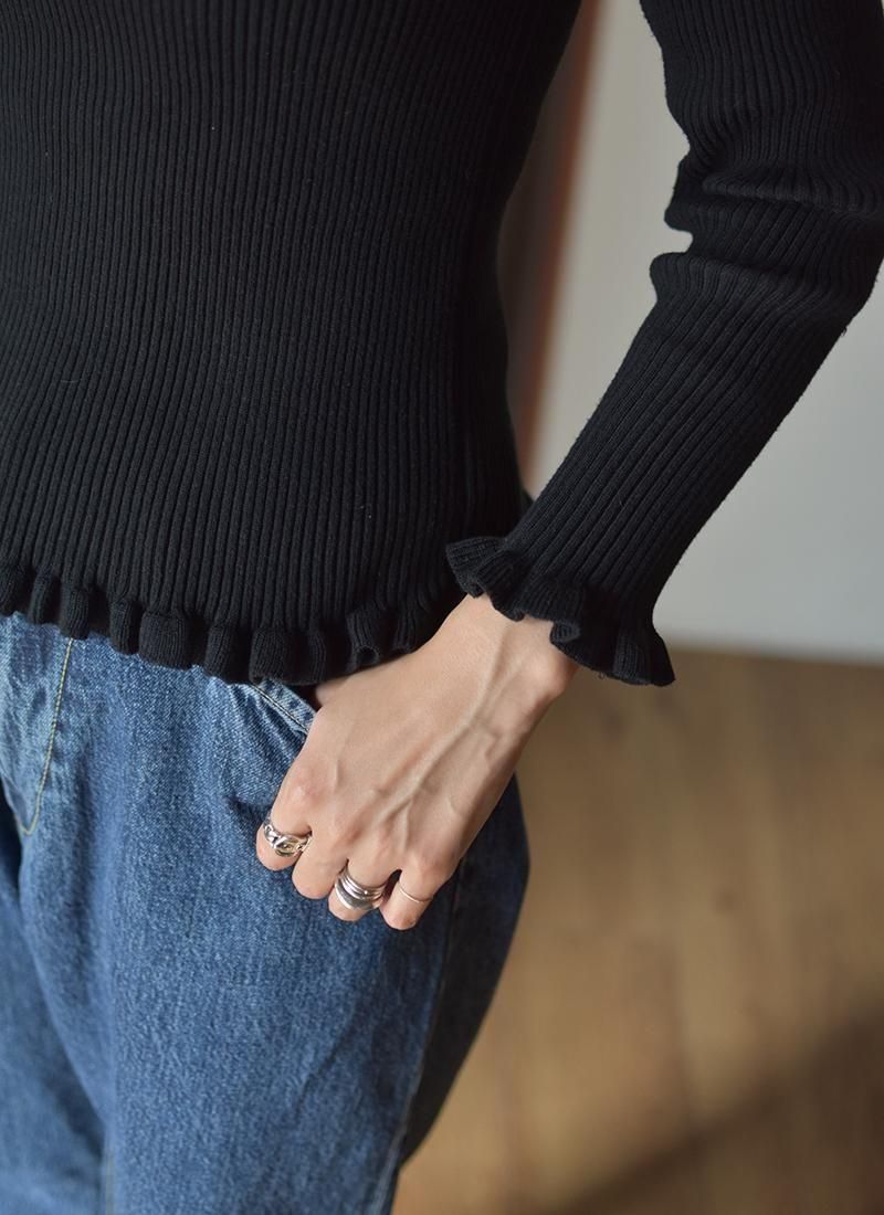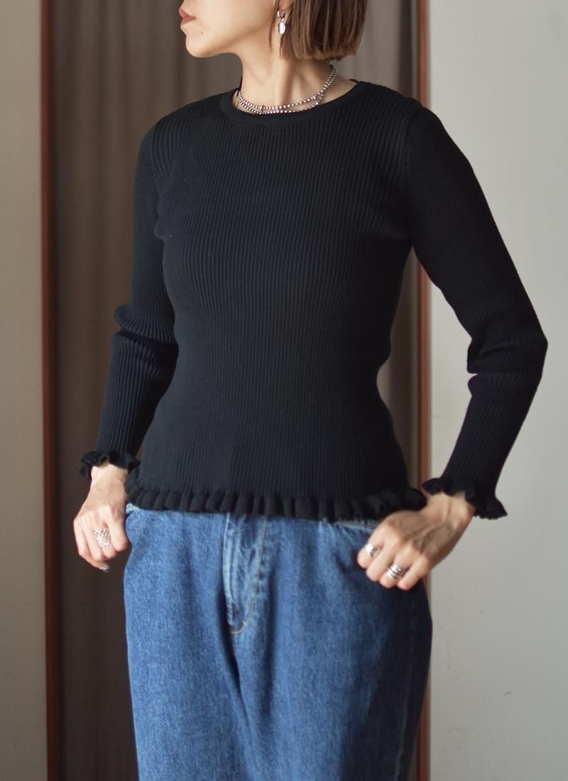 裾と袖口にフリルのデザインが入ったリブカットソー。