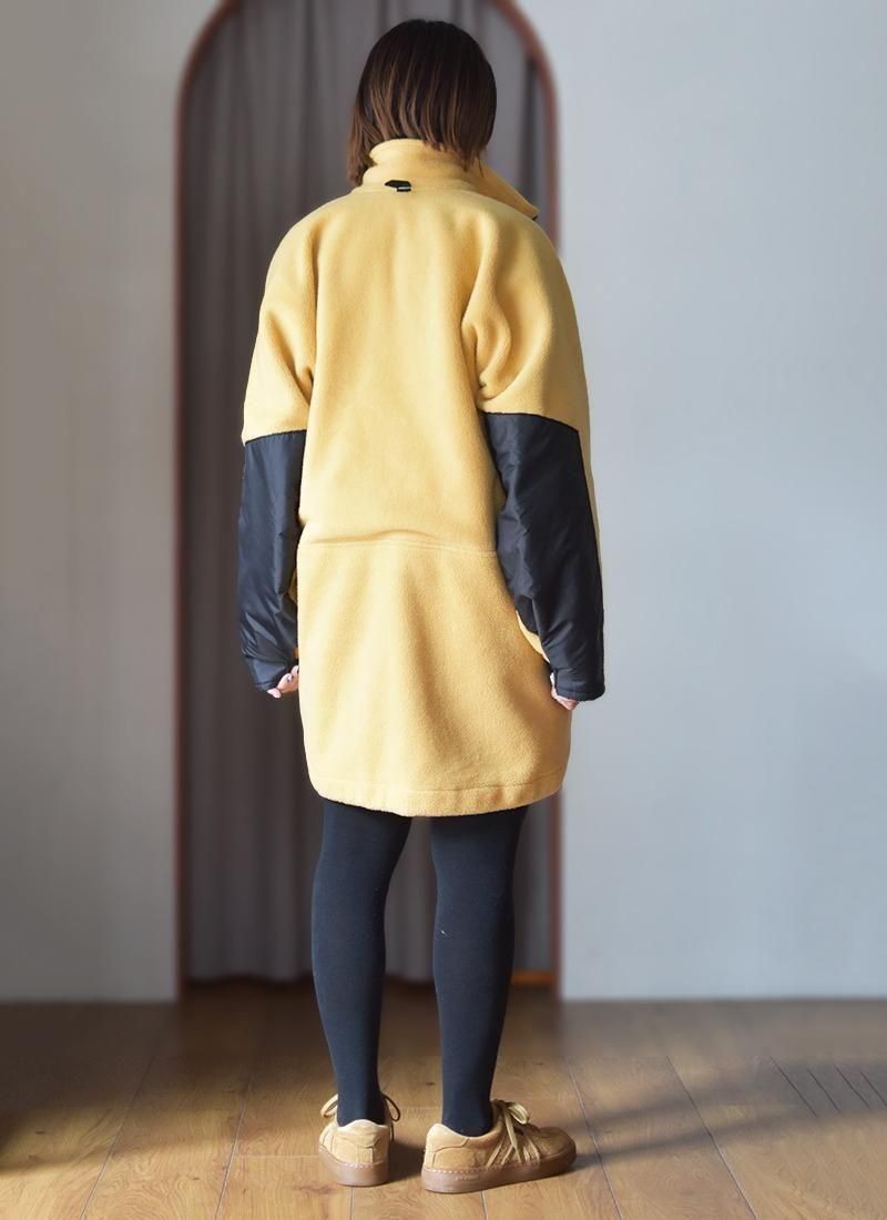 ミディアム丈でダブルジップなのでAラインの様なシルエット。