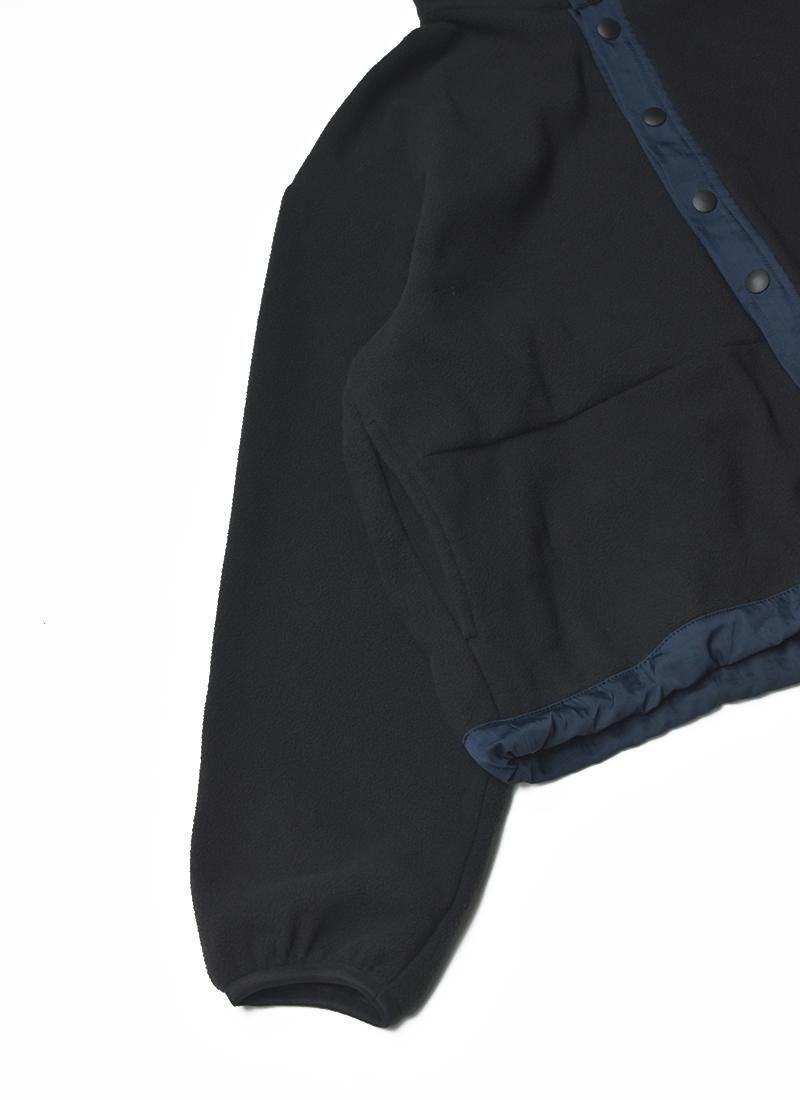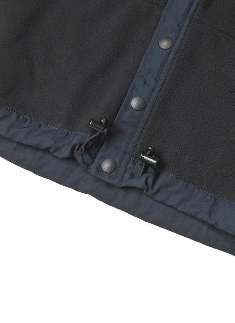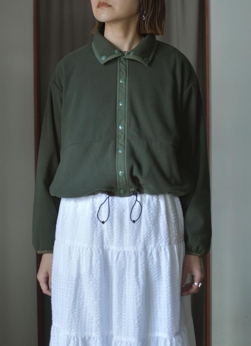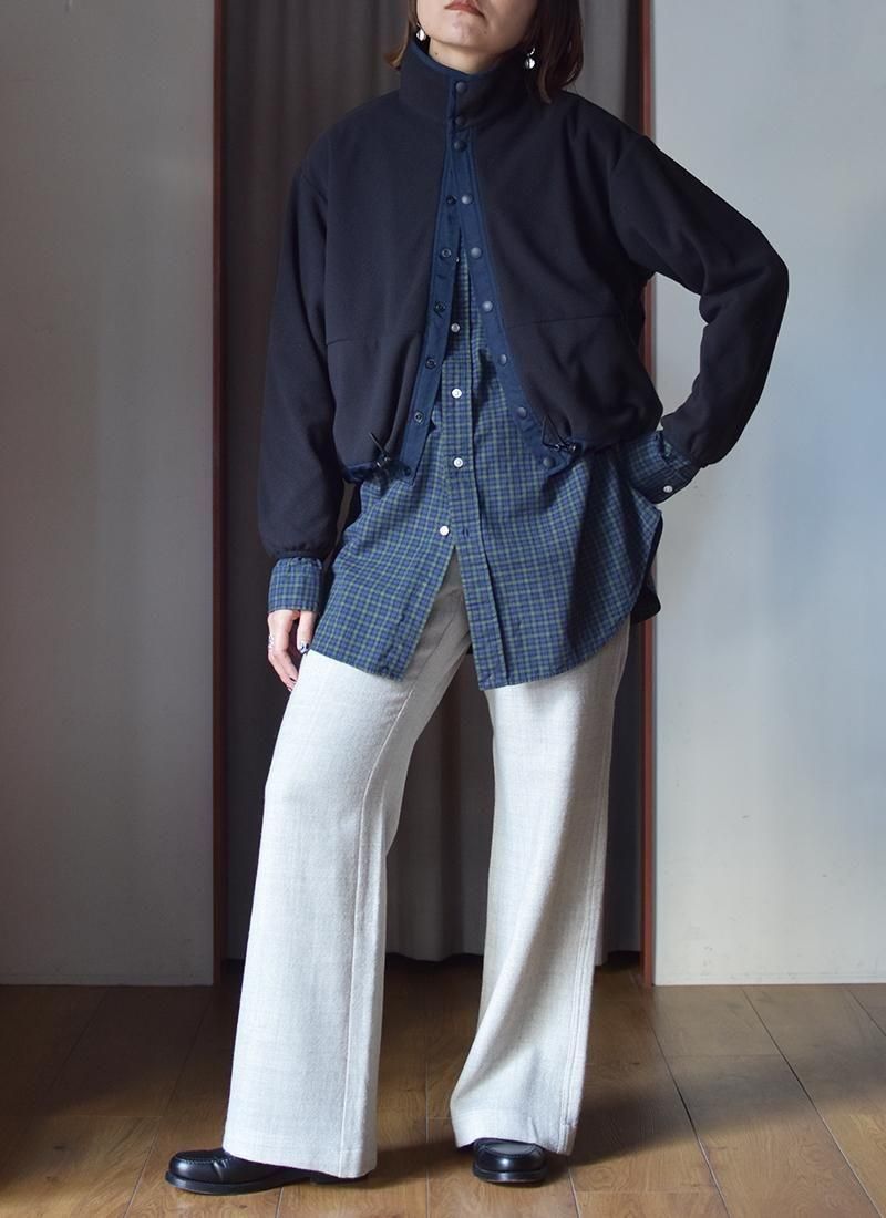 配色にしたパイピングがフリースの柔らかな印象の中にシャープさを加え、カジュアルさと上品さがちょうどいいバランスに収まっています。
