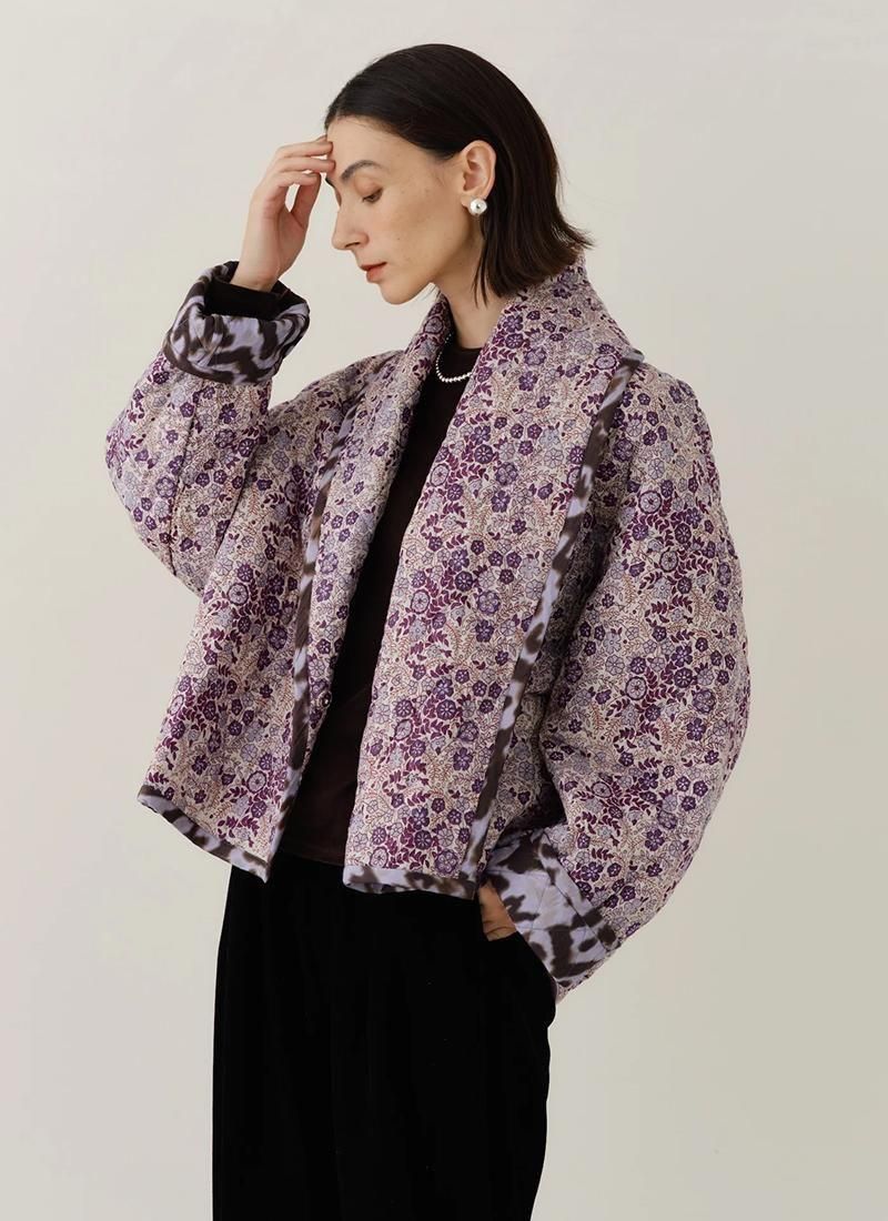 ショールカラーは幅を広めに設定することで、マフラーのように襟を立たせた着こなしも。