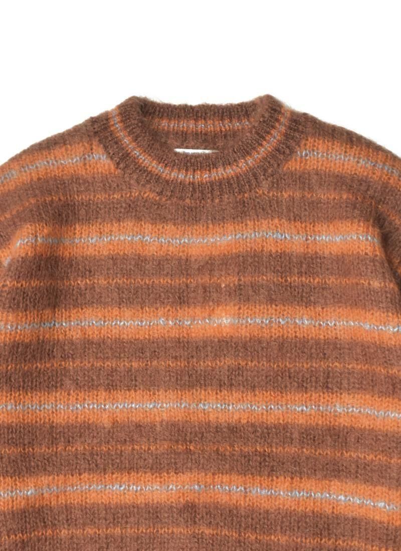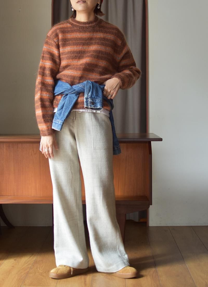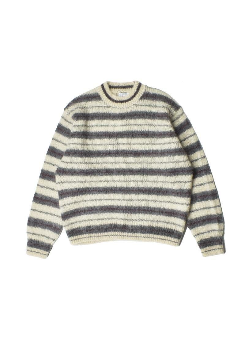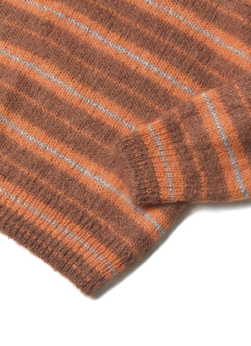 上質なモヘヤウール糸を使い、ざっくりとレトロなボーダー柄で編み上げたローゲージセーター。