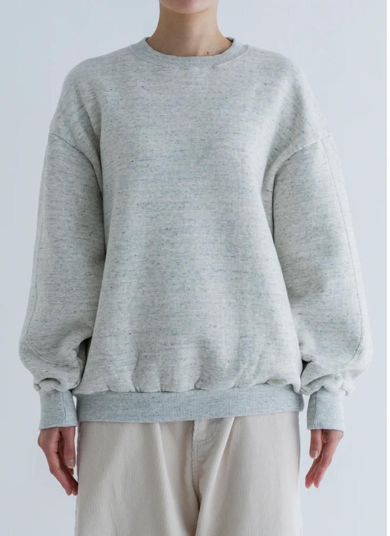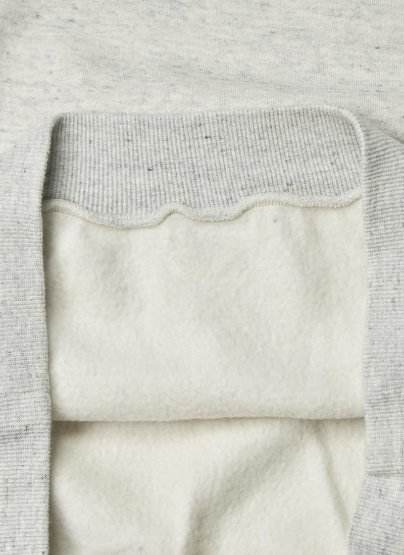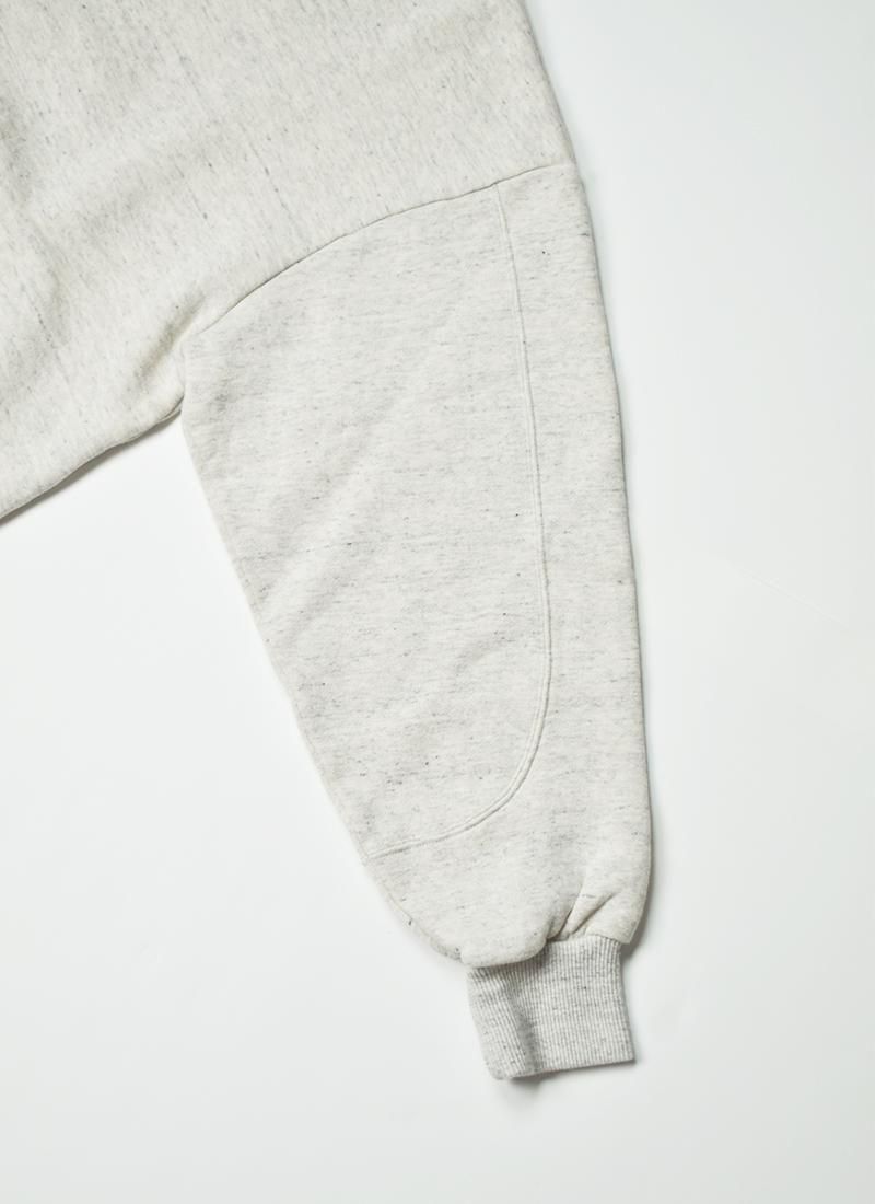 袖に入った切り替え(SWITCHING)、着ると少し丸みを帯びるバランスの取りやすい形、ふわふわとした着心地と暖かさを叶えてくれる裏起毛。