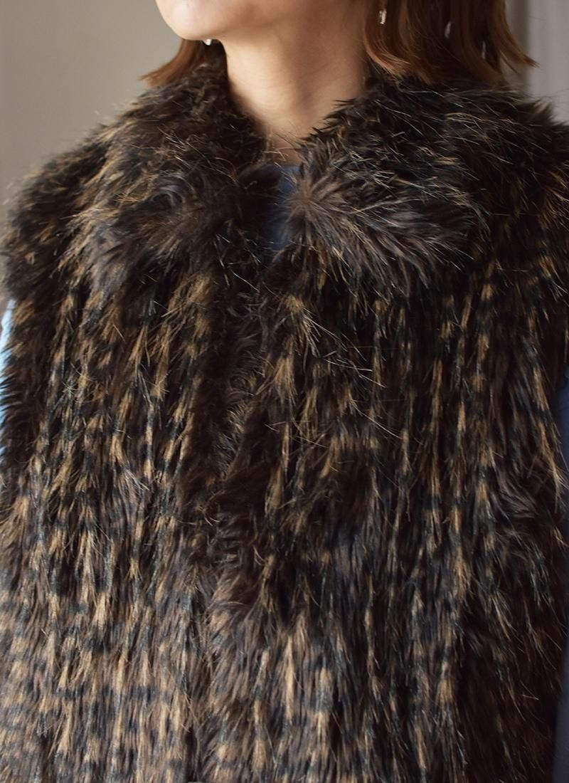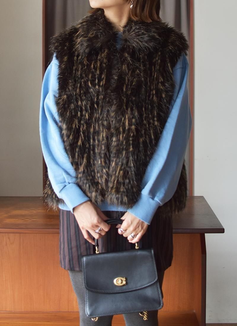 毛足の長いブラウンカラーが大人な印象の80sファーベスト。