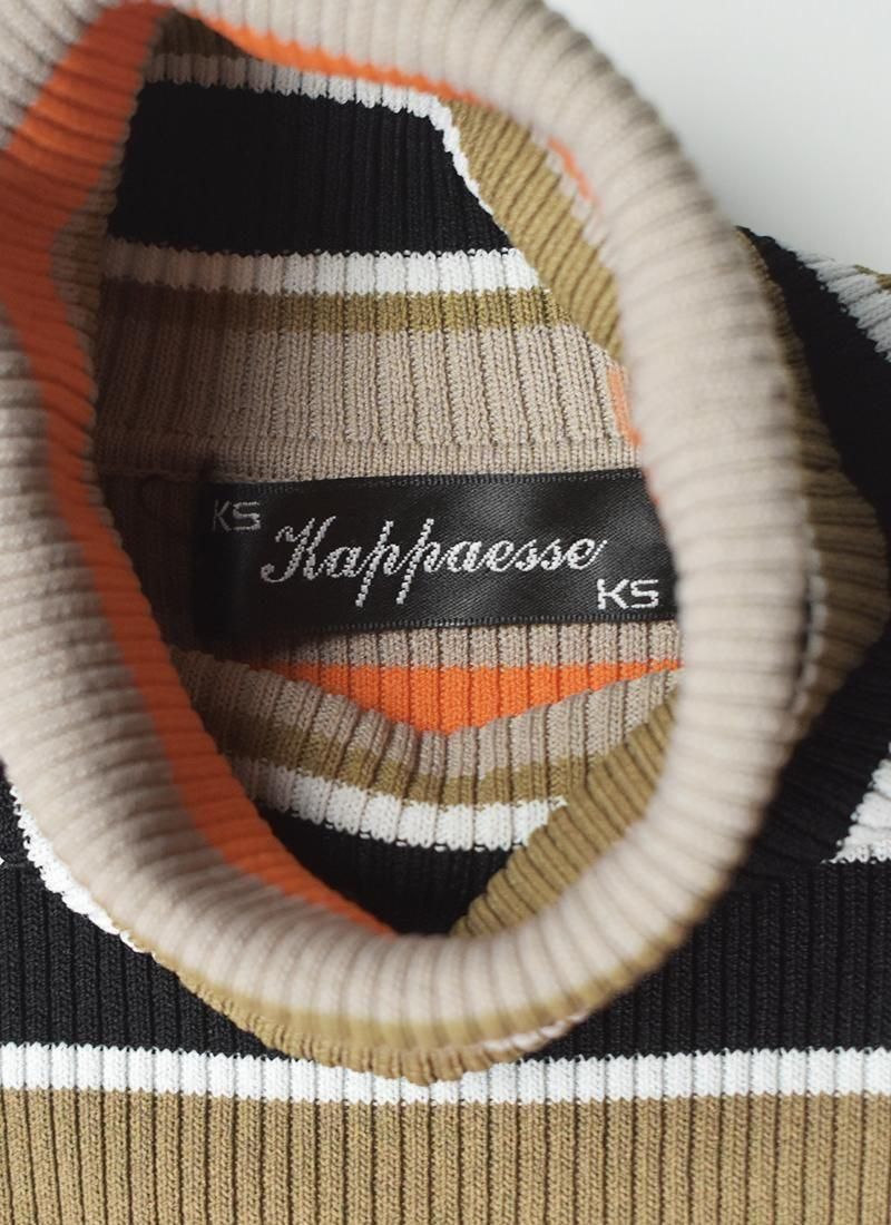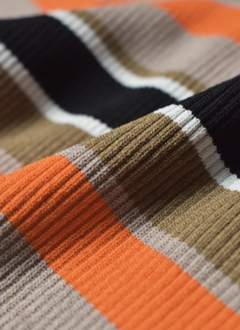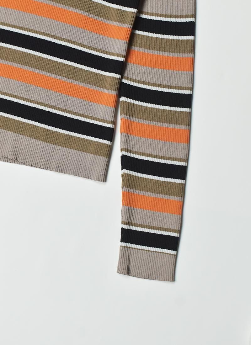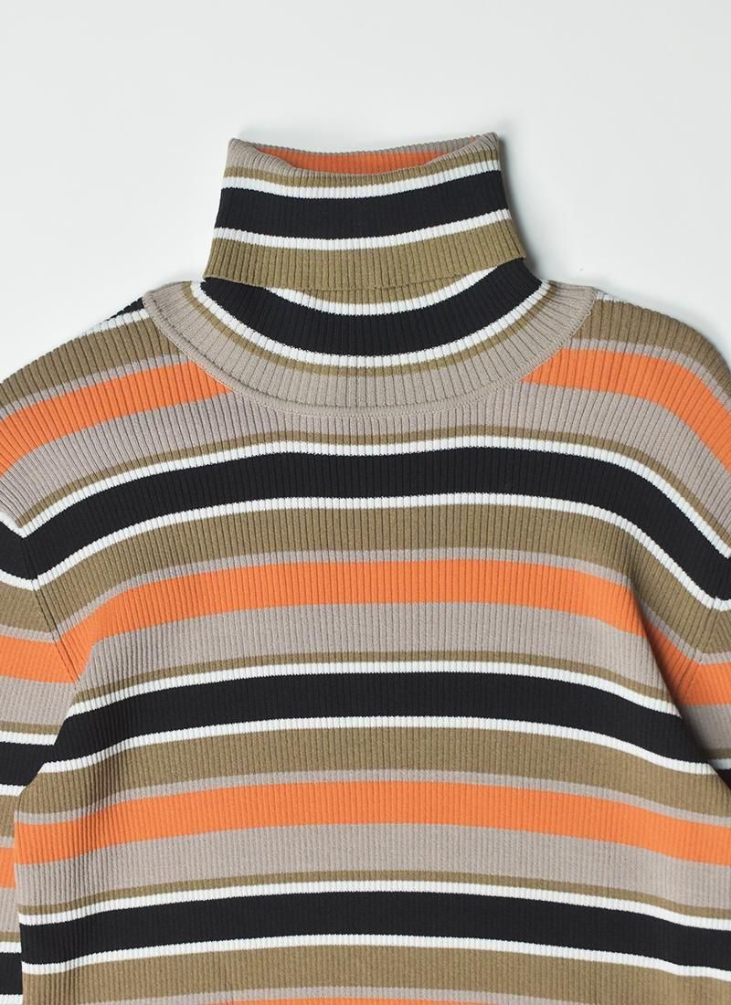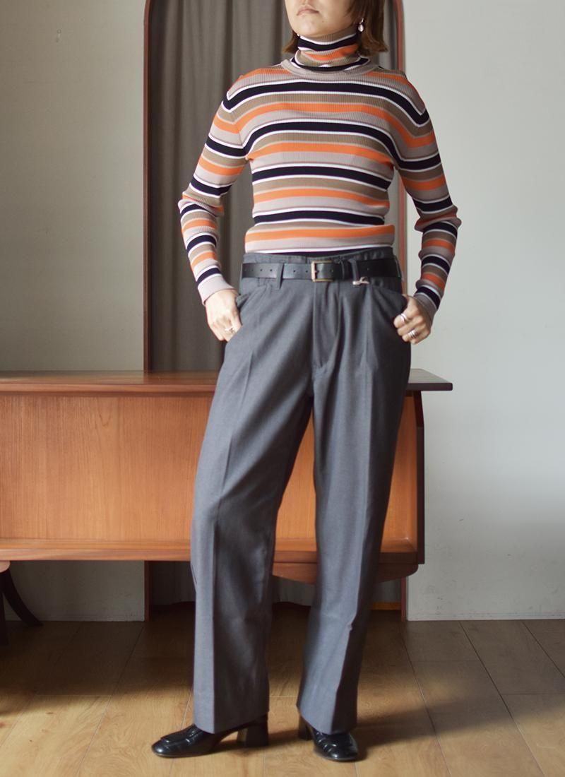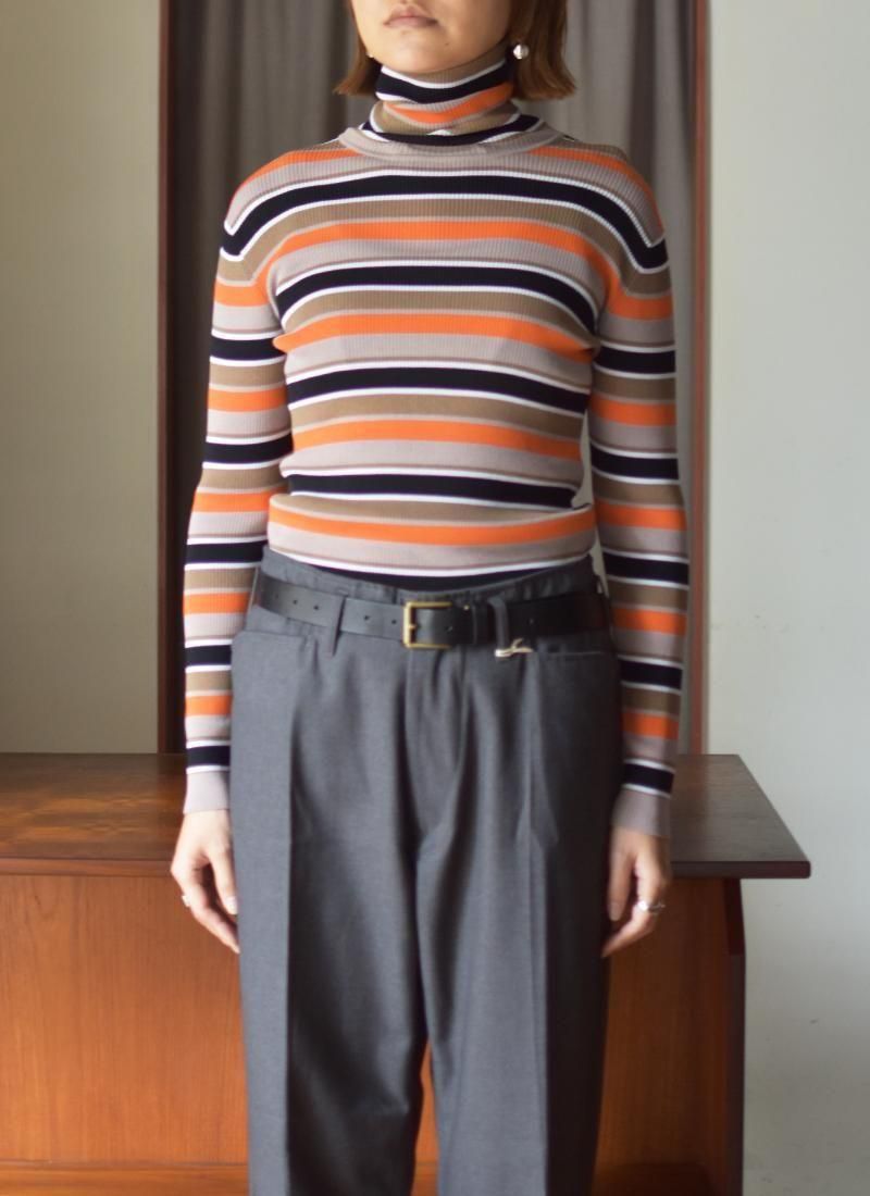 カラーリングが可愛いマルチボーダーのタートルネックニット。