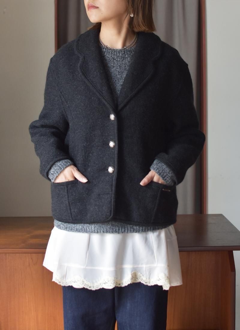 ウール100%の圧縮素材を使用した90sテーラードジャケット。