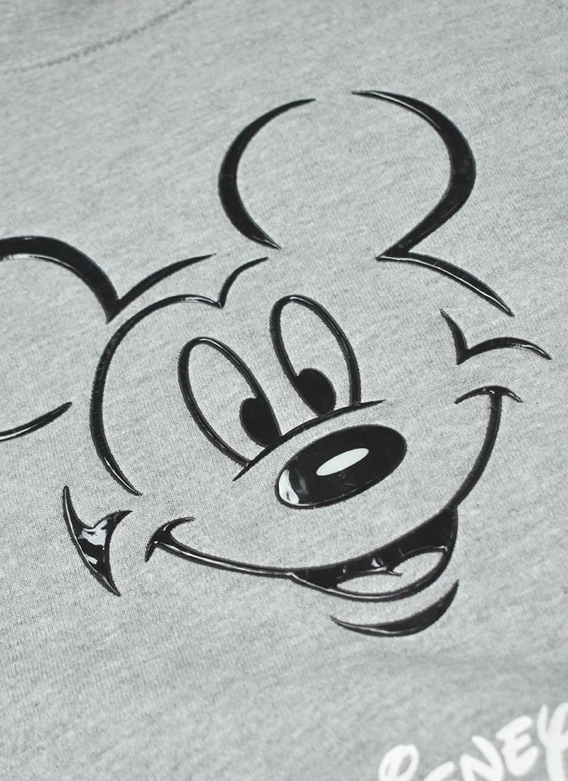 フロントに立体感のあるラバープリントのミッキーが可愛い一枚。